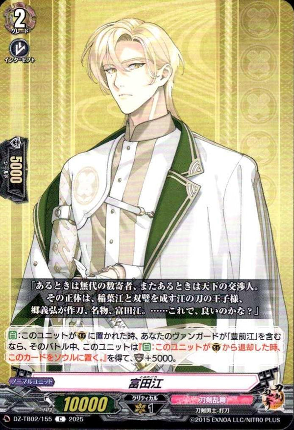 【自】:このユニットが(G)に置かれた時、あなたのヴァンガードが「豊前江」を含むなら、そのバトル中、このユニットは『【自】:このユニットが(G)から退却した時、このカードをソウルに置く。』を得て、シールド+5000。
