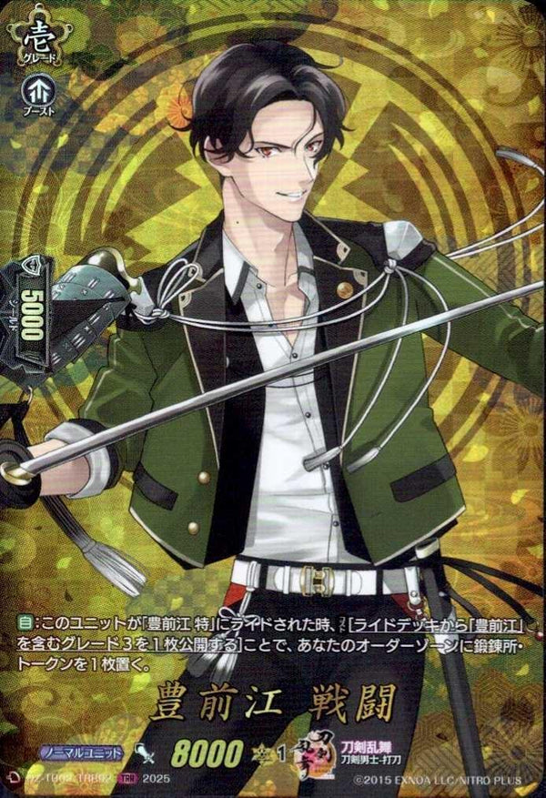 【自】:このユニットが「豊前江 特」にライドされた時、【コスト】[ライドデッキから「豊前江」を含むグレード3を1枚公開する]ことで、あなたのオーダーゾーンに鍛錬所・トークンを1枚置く。