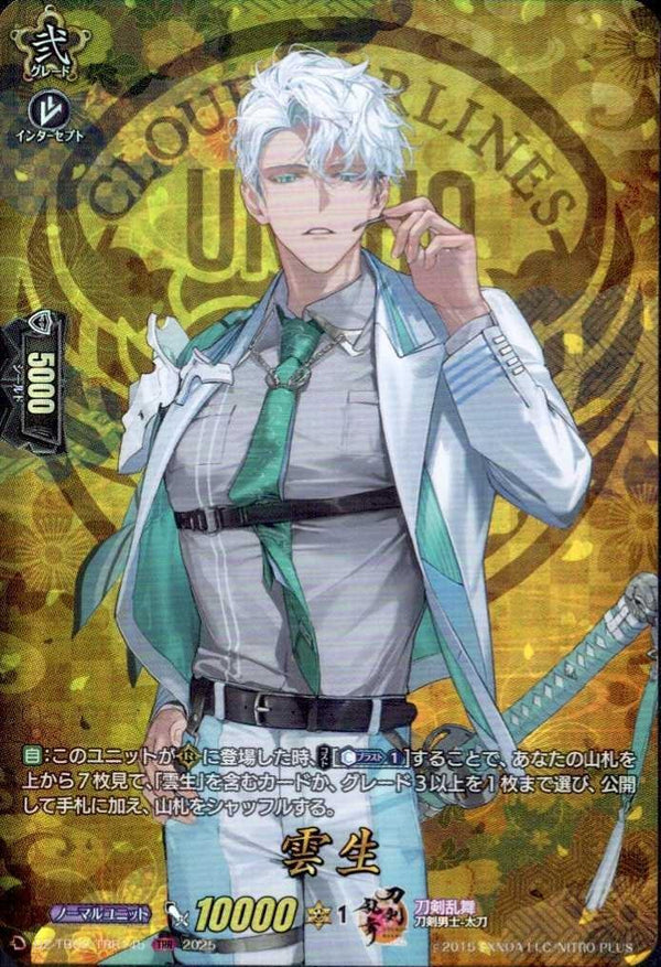 【自】:このユニットが(R)に登場した時、【コスト】[【カウンターブラスト】(1)]することで、あなたの山札を上から7枚見て、「雲生」を含むカードか、グレード3以上を1枚まで選び、公開して手札に加え、山札をシャッフルする。