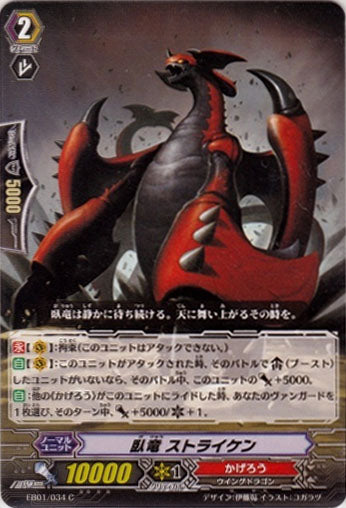【永】【(V)】:拘束(このユニットはアタックできない。)【自】【(V)】:このユニットがアタックされた時、そのバトルで【ブースト】したユニットがいないなら、そのバトル中、このユニットのパワー+5000。【自】:他の《かげろう》がこのユニットにライドした時、あなたのヴァンガードを1枚選び、そのターン中、パワー+5000/クリティカル+1。
