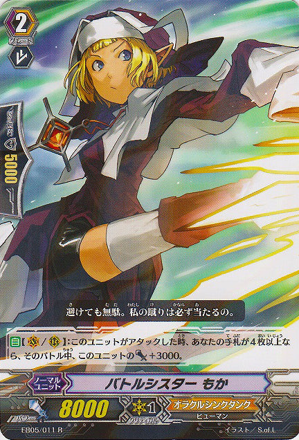 【自】【(V)/(R)】:このユニットがアタックした時、あなたの手札が4枚以上なら、そのバトル中、このユニットのパワー+3000。