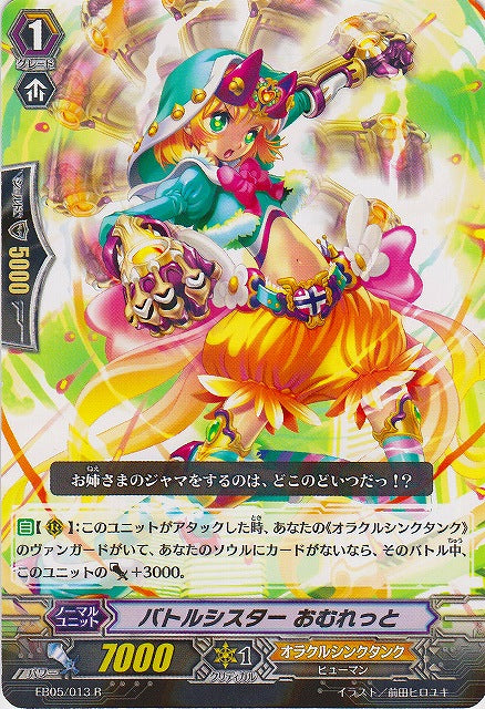 【自】【(R)】:このユニットがアタックした時、あなたの《オラクルシンクタンク》のヴァンガードがいて、あなたのソウルにカードがないなら、そのバトル中、このユニットのパワー+3000。