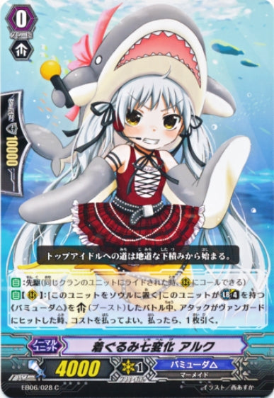 【自】:先駆(同じクランのユニットにライドされた時、(R)にコールできる)【自】【(R)】:[このユニットをソウルに置く]このユニットが【リミットブレイク】(4)を持つ《バミューダ△》を【ブースト】したバトル中、アタックがヴァンガードにヒットした時、コストを払ってよい。払ったら、1枚引く。