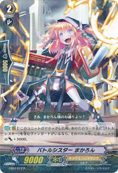 【自】【(R)】:このユニットがアタックした時、あなたのカード名に「バトルシスター」を含むヴァンガードがいるなら、そのバトル中、このユニットのパワー+3000。