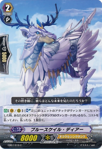 【自】【(V)/(R)】:[【ソウルブラスト】(2)]このユニットのアタックがヴァンガードにヒットした時、あなたの《オラクルシンクタンク》のヴァンガードがいるなら、コストを払ってよい。払ったら、1枚引く。