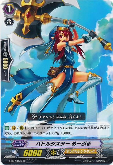【自】【(V)/(R)】:このユニットがアタックした時、あなたの手札が4枚以上なら、そのバトル中、このユニットのパワー+3000。
