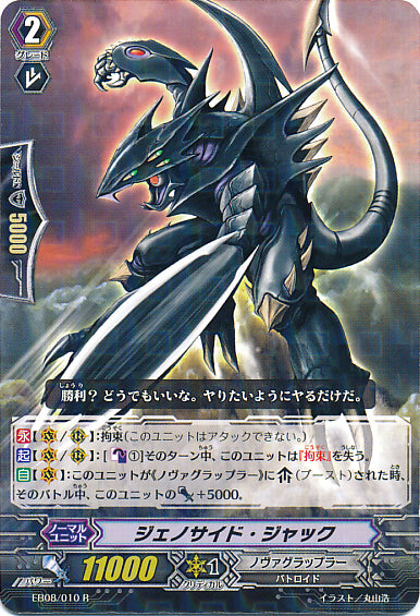 【永】【(V)/(R)】:拘束(このユニットはアタックできない。)【起】【(V)/(R)】:[【カウンターブラスト】(1)]そのターン中、このユニットは『拘束』を失う。【自】【(V)】:このユニットが《ノヴァグラップラー》に【ブースト】された時、そのバトル中、このユニットのパワー+5000。
