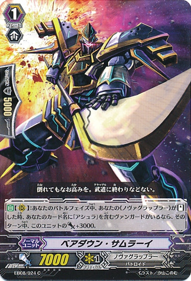 【自】【(R)】:あなたのバトルフェイズ中、あなたの《ノヴァグラップラー》が【スタンド】した時、あなたのカード名に「アシュラ」を含むヴァンガードがいるなら、そのターン中、このユニットのパワー+3000。