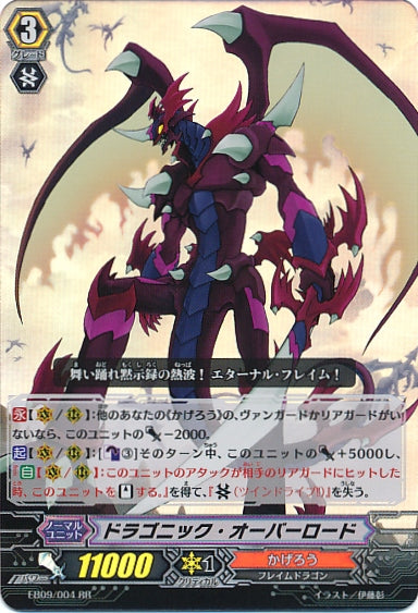 【永】【(V)/(R)】:他のあなたの《かげろう》の、ヴァンガードかリアガードがいないなら、このユニットのパワー-2000。【起】【(V)/(R)】:[【カウンターブラスト】(3)]そのターン中、このユニットのパワー+5000し、『【自】【(V)/(R)】:このユニットのアタックが相手のリアガードにヒットした時、このユニットを【スタンド】する。』を得て、『【ツインドライブ!!】』を失う。