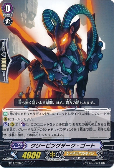 【自】:他の《シャドウパラディン》がこのユニットにライドした時、このカードを(R)にコールしてよい。【起】【(R)】:[【カウンターブラスト】(1),このユニットをソウルに置く]あなたの山札の上から5枚まで見て、グレード3以上の《シャドウパラディン》を1枚まで探し、相手に見せ、手札に加え、その山札をシャッフルする。