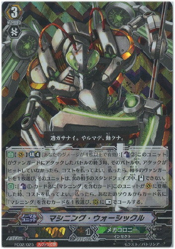 【自】【(V)】【リミットブレイク】(4)(あなたのダメージが4枚以上で有効):[【カウンターブラスト】(2)]このユニットがヴァンガードにアタックしたバトルの終了時、そのバトル中、アタックがヒットしていなかったら、コストを払ってよい。払ったら、相手のヴァンガードを1枚選び、そのユニットは、次の相手のスタンドフェイズ中、【スタンド】できない。【自】:[【カウンターブラスト】(1)-カード名に「マシニング」を含むカード]このユニットが(V)に登場した時、コストを払ってよい。払ったら、あなたのソウルからカード名に「マシニング」を含むカードを1枚選び、(R)に【レスト】でコールする。