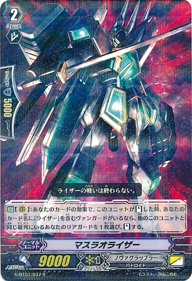【自】【(R)】:あなたのカードの効果で、このユニットが【スタンド】した時、あなたのカード名に「ライザー」を含むヴァンガードがいるなら、他のこのユニットと同じ縦列にいるあなたのリアガードを1枚選び、【スタンド】する。