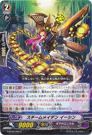 【自】【(R)】【Gブレイク】(1)(あなたの(V)かGゾーンに表のGユニットが1枚以上で有効):[【カウンターブラスト】(1)]あなたのカードの効果で、相手のリアガードが山札に置かれた時、コストを払ってよい。払ったら、そのターン中、このユニットは『【自】【(R)】:このユニットがヴァンガードにアタックした時、そのバトル中、相手はグレード0のカードを手札から(G)にコールできない。』を得る。【永】【(V)/(R)/(G)】:抵抗(相手のカードの効果で選ばれない)