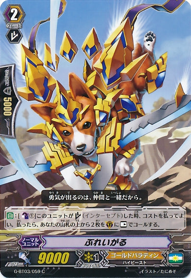 【自】:[【カウンターブラスト】(1)]このユニットが【インターセプト】した時、コストを払ってよい。払ったら、あなたの山札の上から2枚を(G)に【レスト】でコールする。