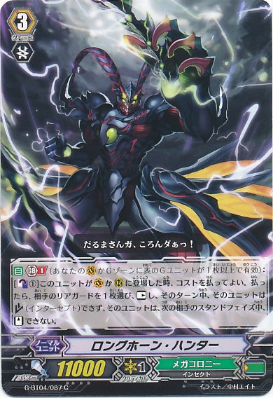【自】【Gブレイク】(1)(あなたの (V)かGゾーンに表のGユニットが1枚以上で有効):[【カウンターブラスト】(1)]このユニットが (V)か(R)に登場した時、コストを払ってよい。払ったら、相手のリアガードを1枚選び、【レスト】し、そのターン中、そのユニットは【インターセプト】できず、そのユニットは、次の相手のスタンドフェイズ中、【スタンド】できない。