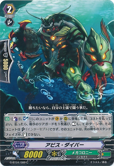 【自】:[【カウンターブラスト】(1),【ソウルブラスト】(1)]このユニットが (V)か(R)に登場した時、コストを払ってよい。払ったら、相手のリアガードを1枚選び、【レスト】し、そのターン中、そのユニットは【インターセプト】できず、そのユニットは、次の相手のスタンドフェイズ中、【スタンド】できない。