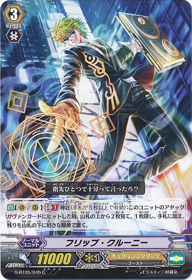 【自】【(V)/(R)】【Gブレイク】(1)神託(手札が5枚以上で有効):このユニットのアタックがヴァンガードにヒットした時、山札の上から2枚見て、1枚探し、手札に加え、残りを山札の下に好きな順番で置く。