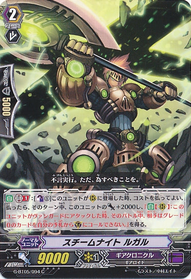 【自】【Gブレイク】(1):[【カウンターブラスト】(1)]このユニットが(R)に登場した時、コストを払ってよい。払ったら、そのターン中、このユニットのパワー+2000し、『【自】【(R)】:このユニットがヴァンガードにアタックした時、そのバトル中、相手はグレード0のカードを自分の手札から(G)にコールできない。』を得る。