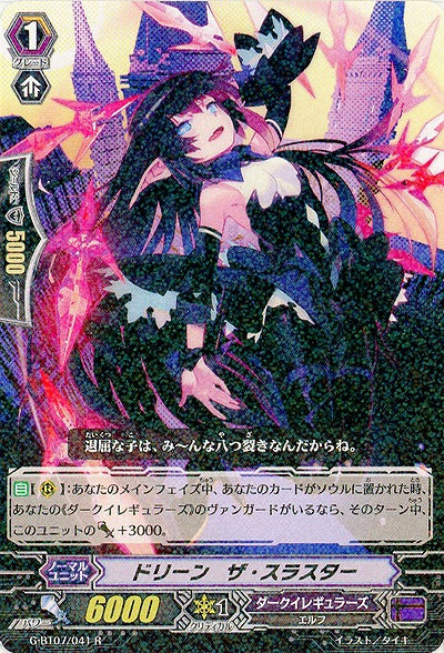 【自】【(R)】:あなたのメインフェイズ中、あなたのカードがソウルに置かれた時、あなたの《ダークイレギュラーズ》のヴァンガードがいるなら、そのターン中、このユニットのパワー+3000。