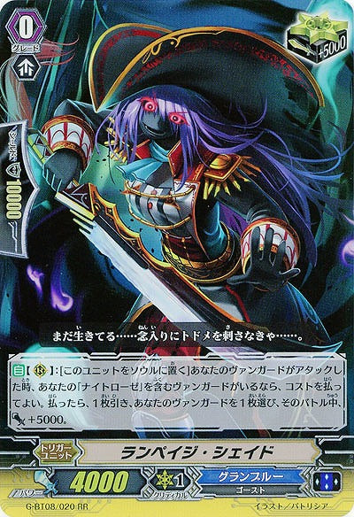アップデート:シールド、トリガー、テキスト【自】【(R)】:「ナイトローゼ」を含むグレード3以上のあなたのヴァンガードがアタックした時、【コスト】[このユニットをソウルに置く]ことで、1枚引き、あなたのヴァンガードを1枚選び、そのバトル中、パワー+5000。【自】:このカードがダメージチェックで出た時、1枚引く。