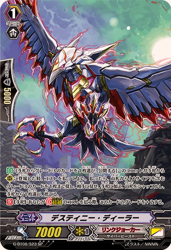 【自】:[手札からグレード3のカードを1枚選び、公開する]このユニットが手札から(R)に登場した時、コストを払ってよい。払ったら、山札から「メサイア」を含むグレード3のカードを1枚まで探し、相手に見せ、手札に加え、山札をシャッフルし、手札から1枚選び、捨てる。【永】【手札】:あなたが【超越】のコストを払う際、このカードのグレードを+2する。