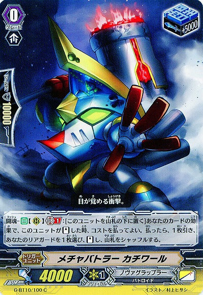 闘魂-【自】【(R)】【Gブレイク】(1):[このユニットを山札の下に置く]あなたのカードの効果で、このユニットが【スタンド】した時、コストを払ってよい。払ったら、1枚引き、あなたのリアガードを1枚選び、【スタンド】し、山札をシャッフルする。
