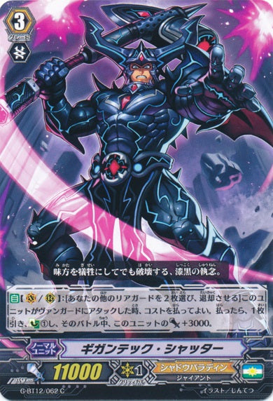 【自】【(V)/(R)】:[あなたの他のリアガードを2枚選び、退却させる]このユニットがヴァンガードにアタックした時、コストを払ってよい。払ったら、1枚引き、【カウンターチャージ】(1)し、そのバトル中、このユニットのパワー+3000。
