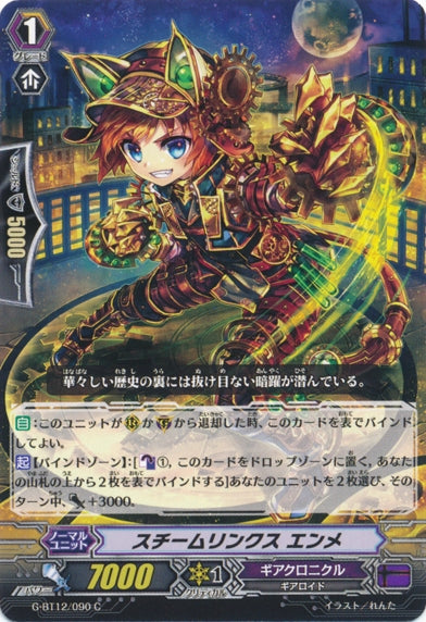 【自】:このユニットが(R)か(G)から退却した時、このカードを表でバインドしてよい。【起】【バインドゾーン】:[【カウンターブラスト】(1),このカードをドロップゾーンに置く,あなたの山札の上から2枚を表でバインドする]あなたのユニットを2枚選び、そのターン中、パワー+3000。