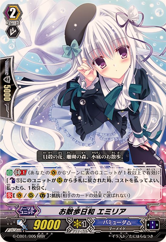 【自】【Gブレイク】(1)(あなたの(V)かGゾーンに表のGユニットが1枚以上で有効):[【カウンターブラスト】(1)]このユニットが(R)から手札に戻された時、コストを払ってよい。払ったら、1枚引く。【永】【(V)/(R)/(G)】:抵抗(相手のカードの効果で選ばれない)