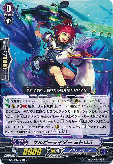 【自】:先駆(同じクランのユニットにライドされた時、(R)にコールできる)【自】【(R)】【Gブレイク】(1)連波-3回目以降(各ターンの指定されたバトルで有効):[このユニットをソウルに置く]あなたのヴァンガードがアタックした時、あなたのカード名に「サヴァス」を含むグレード3以上のヴァンガードがいるなら、コストを払ってよい。払ったら、あなたの山札からカード名に「サヴァス」を含むグレード3のカードを1枚まで探し、(R)にコールし、その山札をシャッフルし、そのターンの終了時、そのユニットを手札に戻す。