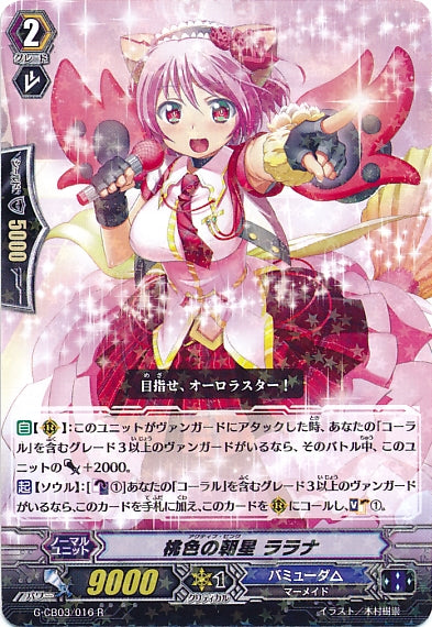 【自】【(R)】:このユニットがヴァンガードにアタックした時、あなたの「コーラル」を含むグレード3以上のヴァンガードがいるなら、そのバトル中、このユニットのパワー+2000。【起】【ソウル】:[【カウンターブラスト】(1)]あなたの「コーラル」を含むグレード3以上のヴァンガードがいるなら、このカードを手札に加え、このカードを(R)にコールし、【ソウルチャージ】(1)。