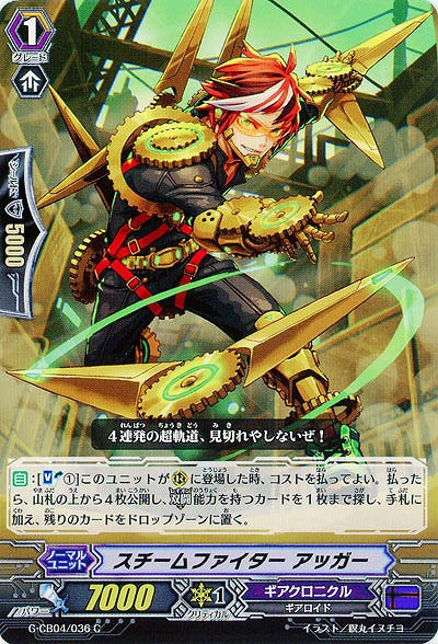 【自】:[【ソウルブラスト】(1)]このユニットが(R)に登場した時、コストを払ってよい。払ったら、山札の上から4枚公開し、【双闘】能力を持つカードを1枚まで探し、手札に加え、残りのカードをドロップゾーンに置く。