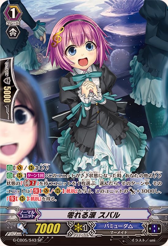 【自】【(V)/(R)】:♪♪【自】【(R)】【ターン1回】:このユニットが♪♪状態になった時、あなたの他の♪♪状態の『【Gブレイク】(2)』を持つユニットを1枚選ぶ。選んだら、そのターン中、そのユニットに『【永】【(V)/(R)】:抵抗』を与え、このユニットのパワー+3000し、『【永】【(R)】:抵抗』を得る。