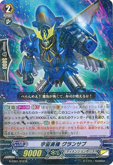 【自】【(R)】【ターン1回】【Gブレイク】(1)(あなたの(V)かGゾーンに表のGユニットが1枚以上で有効):あなたのカードの効果で、このユニットのパワーが増加した時、このユニットのパワーが13000以上なら、あなたのヴァンガードを1枚選び、そのターン中、パワー+4000し、『【自】【(V)】:このユニットのアタックがヴァンガードにヒットした時、相手は自分のリアガードを1枚選び、退却させる。』を与える。(ブーストとガードによる増加では発動しない)