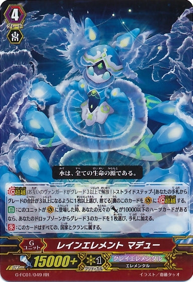 【超越】(お互いのヴァンガードがグレード3以上で解放!)-ストライドステップ-[あなたの手札からグレードの合計が3以上になるように1枚以上選び、捨てる]裏のこのカードを (V)に【超越】する。【自】:このユニットが (V)に登場した時、あなたの元々のパワーが10000以下のハーツカードがあるなら、あなたのドロップゾーンからグレード3のカードを1枚選び、手札に加える。【永】:このカードはすべての、国家とクランに属する。