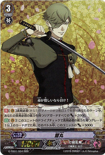 【永】【(V)】真剣必殺(あなたのダメージが3枚以上で有効):あなたのターン中、あなたの真剣必殺の能力を持つリアガードすべてのパワー+2000。【自】【(V)】:このユニットのドライブチェックで真剣必殺の能力を持つグレード1以上のカードがでた時、そのバトル中、このユニットのパワー+5000。