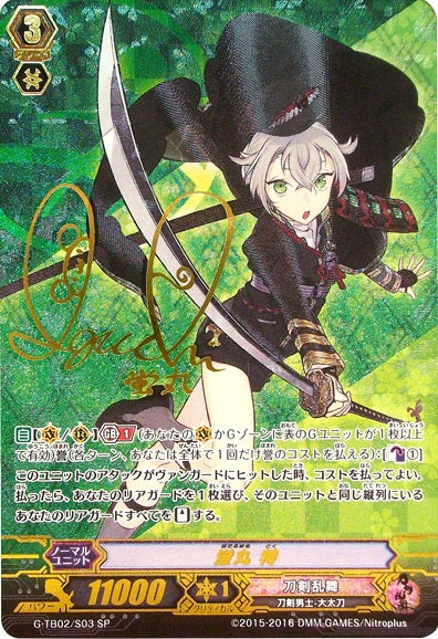 【自】【(V)/(R)】【Gブレイク】(1)(あなたの(V)かGゾーンに表のGユニットが1枚以上で有効)誉(各ターン、あなたは全体で1回だけ誉のコストを払える):[【カウンターブラスト】(1)]このユニットのアタックがヴァンガードにヒットした時、コストを払ってよい。払ったら、あなたのリアガードを1枚選び、そのユニットと同じ縦列にいるあなたのリアガードすべてを【スタンド】する。