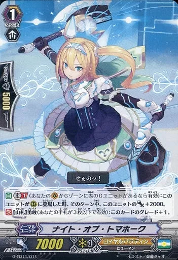 【自】【Gブレイク】(1)(あなたの(V)かGゾーンに表のGユニットがあるなら有効):このユニットが(R)に登場した時、そのターン中、このユニットのパワー+2000。【永】【山札】勇敢(あなたの手札が3枚以下で有効):このカードのグレード+1。