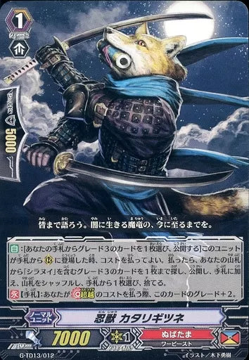 【自】:[あなたの手札からグレード3のカードを1枚選び、公開する]このユニットが手札から(R)に登場した時、コストを払ってよい。払ったら、あなたの山札から「シラヌイ」を含むグレード3のカードを1枚まで探し、公開し、手札に加え、山札をシャッフルし、手札から1枚選び、捨てる。【永】【手札】:あなたが【超越】のコストを払う際、このカードのグレード+2。