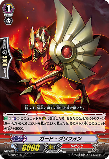 【自】:[【カウンターブラスト】(1)]このユニットが(G)に登場した時、あなたの《かげろう》のヴァンガードがいるなら、コストを払ってよい。払ったら、そのバトル中、このユニットのシールド+5000。