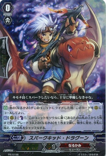 【自】:他の《なるかみ》がこのユニットにライドした時、このカードを(R)にコールしてよい。【起】【(R)】:[【カウンターブラスト】(1),このユニットをソウルに置く]あなたの山札の上から5枚まで見て、グレード3以上の《なるかみ》を1枚まで探し、相手に見せ、手札に加え、その山札をシャッフルする。