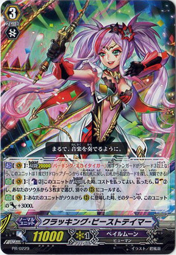 【起】【(V)】:【双闘20000】「バーキング・スカイタイガー」(相手ヴァンガードがグレード3以上なら、このユニットは1度だけドロップゾーンから4枚山札に戻し、山札から指定カードを探し、双闘できる)【自】【(V)】:[【カウンターブラスト】(2)]このユニットが【双闘】した時、コストを払ってよい。払ったら、【ソウルチャージ】(2)し、あなたのソウルから3枚まで選び、別々の(R)にコールする。【自】【(V)】:あなたのユニットがソウルから(R)に登場した時、そのターン中、このユニットのパワー+3000。