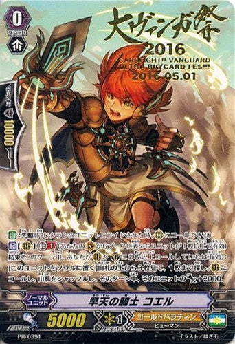 【自】:先駆(同じクランのユニットにライドされた時、(R)にコールできる)【起】【(R)】【Gブレイク】(1)(あなたの(V)かGゾーンに表のGユニットが1枚以上で有効)結束(このターン中、あなたが(R)か(G)に2枚以上コールしていれば有効):[このユニットをソウルに置く]山札の上から3枚見て、1枚まで探し、(R)にコールし、山札をシャッフルし、そのターン中、そのユニットのパワー+2000。