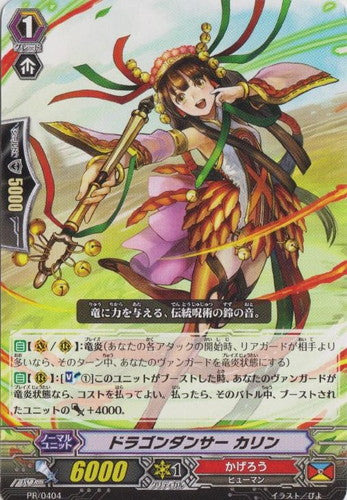 【自】【(V)/(R)】:竜炎(あなたの各アタックの開始時、リアガードが相手より多いなら、そのターン中、あなたのヴァンガードを竜炎状態にする)【自】【(R)】:[【ソウルブラスト】(1)]このユニットがブーストした時、あなたのヴァンガードが竜炎状態なら、コストを払ってよい。払ったら、そのバトル中、ブーストされたユニットのパワー+4000。