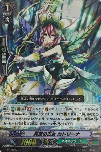 開花-【自】【(R)】【Gブレイク】(1)(あなたの(V)かGゾーンに表のGユニットがあるなら有効):他のあなたの「純潔の乙女 カトリーナ」が(R)に登場した時、あなたの「ラナンキュラス」を含むヴァンガードがいるなら、あなたの(R)の「純潔の乙女 カトリーナ」を5枚まで選び、そのターン中、パワー+4000。