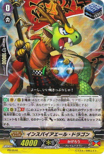 【自】【(V)/(R)】:竜炎(あなたの各アタックの開始時、リアガードが相手より多いなら、そのターン中、あなたのヴァンガードを竜炎状態にする)【自】【(R)】【Gブレイク】(1):[このユニットを山札の下に置く]あなたのヴァンガードが竜炎状態になった時、コストを払ってよい。払ったら、1枚引き、あなたのユニットを1枚選び、そのターン中、パワー+5000。あなたの山札をシャッフルする。