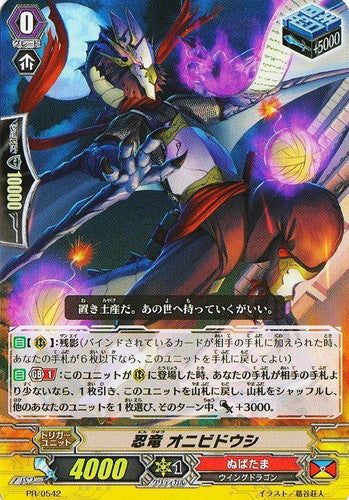 【自】【(R)】:残影(バインドされているカードが相手の手札に加えられた時、あなたの手札が6枚以下なら、このユニットを手札に戻してよい)【自】【Gブレイク】(1):このユニットが(R)に登場した時、あなたの手札が相手の手札より少ないなら、1枚引き、このユニットを山札に戻し、山札をシャッフルし、他のあなたのユニットを1枚選び、そのターン中、パワー+3000。