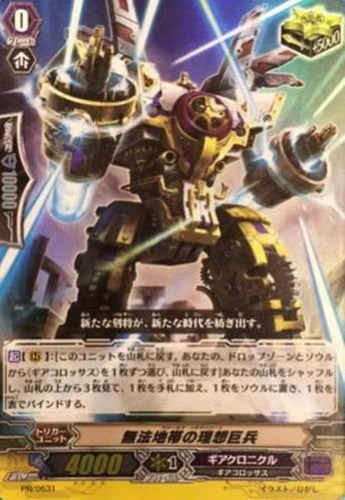 【起】【(R)】:[このユニットを山札に戻す,あなたの、ドロップゾーンとソウルから〈ギアコロッサス〉を1枚ずつ選び、山札に戻す]あなたの山札をシャッフルし、山札の上から3枚見て、1枚を手札に加え、1枚をソウルに置き、1枚を表でバインドする。