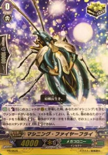 【自】:[【カウンターブラスト】(1)]このユニットが(R)に登場した時、あなたの「マシニング」を含むヴァンガードがいるなら、コストを払ってよい。払ったら、他のあなたのリアガードを1枚選び、【スタンド】し、相手のリアガードを1枚選び、そのユニットは次の相手のスタンドフェイズ中、【スタンド】できない。