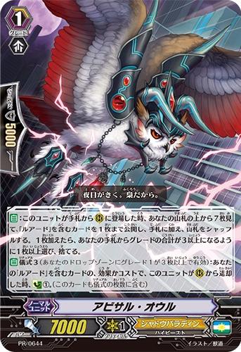 【自】:このユニットが手札から(R)に登場した時、あなたの山札の上から7枚見て、「ルアード」を含むカードを1枚まで公開し、手札に加え、山札をシャッフルする。1枚加えたら、あなたの手札からグレードの合計が3以上になるように1枚以上選び、捨てる。【自】儀式3(あなたのドロップゾーンにグレード1が3枚以上で有効):あなたの「ルアード」を含むカードの、効果かコストで、このユニットが(R)から退却した時、【カウンターチャージ】(1)。(このカードも儀式の枚数に含む)